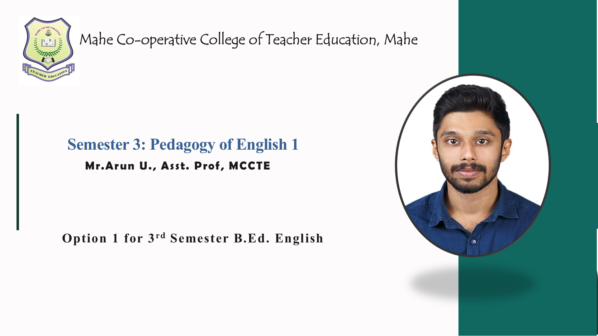 - Teacher: Arun U FACULTY